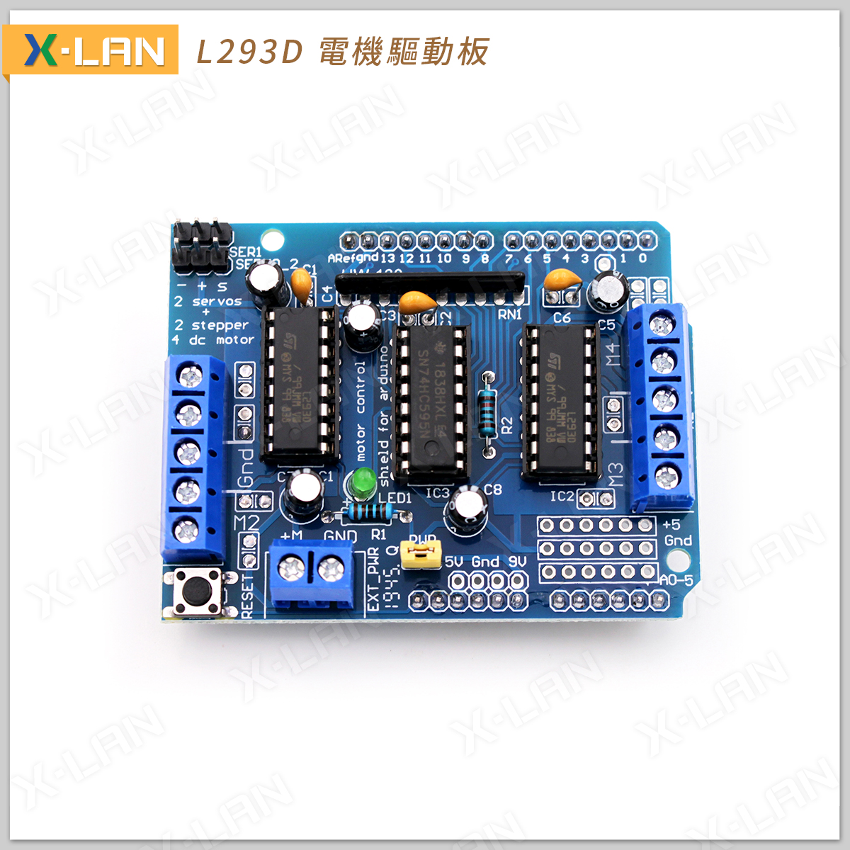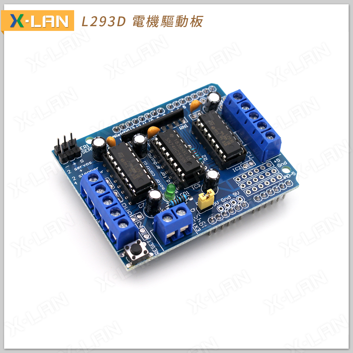 1.此直流電機驅動板,採用 L293D 小電流直流電機驅動晶片,方便愛好者快速地進行 Arduino 程式開發。