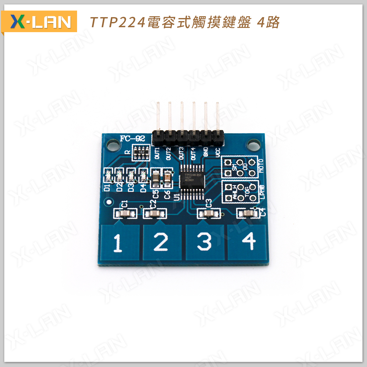 1.板載 TTP224 電容式 4 鍵觸摸感應 IC。